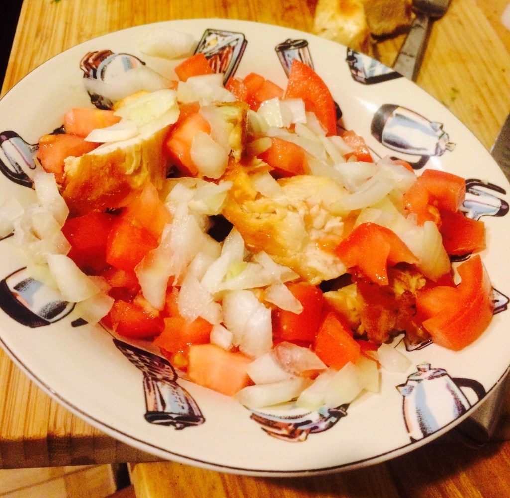 Let’s go back to that irresponsible recipe classification, though. Do adjacent chunks of onion and tomato constitute a salsa? Or are the few sprigs of cilantro you’d need to make pico de gallo the minimum required to earn that label? I don’t know. And the answer doesn’t change the end result, which is onion. Another shopper was lingering over the reds, so I settled for a white and thank god I did because this amount of red onion would’ve damaged me. I only ever saute or stir fry white onions and now I remember why. Raw white onion is almost nothing. It’s Red Onion LaCroix. A complementary meh that should’ve allowed the unseasoning of the chicken to shine, which it did not, and the underripe juicelessness of the tomato to pop, which it did not. The tomato was bone dry, with a consistency more like chicken than the actual chicken (cooked until the insides pulled apart like string cheese) and completely flavorless. Three underperformances by the only three ingredients. I can’t even be mad because 1) I did it to myself and 2) properly cooked chicken with fresh tomato and red onion is still nothing food.
